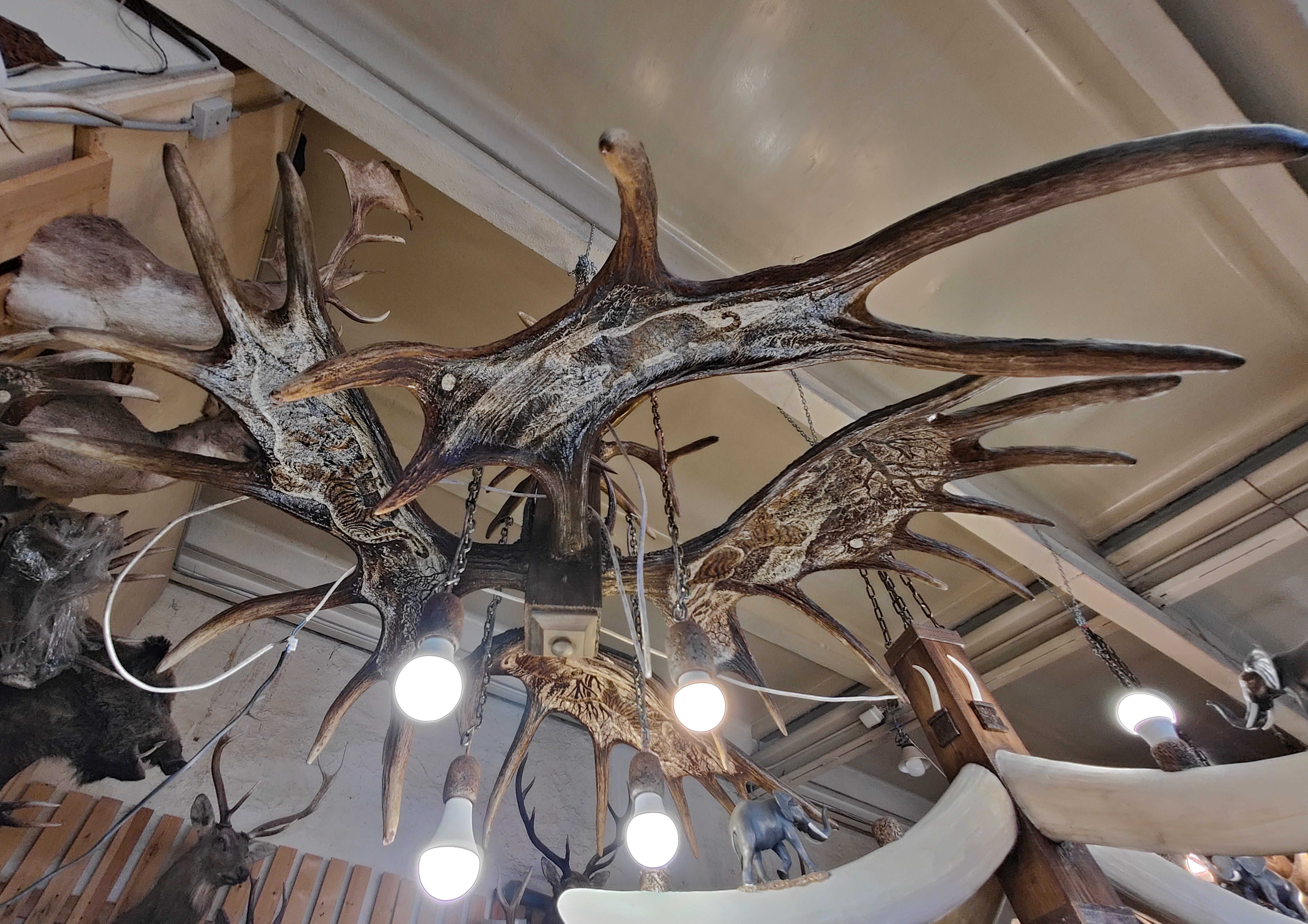 Фото Люстра с рогами лося с рисунками